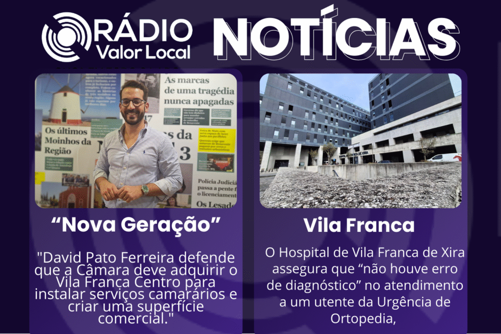 O candidato da Nova Geração, David Pato Ferreira, defendeu na Rádio Valor Local, que se ganhar as eleições o seu objetivo para o Vila Franca Centro passa por reaver o edifício, apesar de uma importante percentagem de frações já ter sido adquirida por um privado. O candidato quer instalar ali áreas comerciais e serviços da Câmara. Hospital de Vila Franca de Xira nega negligência no caso de utente atendido na Ortopedia.