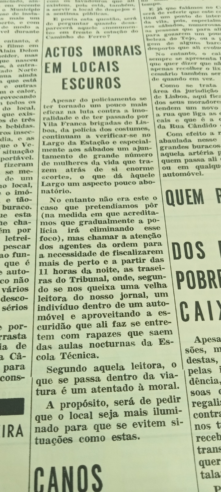 Durante todo o Estado Novo, “a pobreza do país e das pessoas é tratada como algo natural” também na imprensa. “Não eram escritos textos sobre as dificuldades dos trabalhadores. Nada aparece sobre a dita praça da jorna”. A própria passagem do general Humberto Delgado por Vila Franca por ocasião da eleição presidencial de 1958 “nunca saiu no jornal” nem tão pouco se escreveu sobre o Movimento Unidade Democrática, da oposição antifascista. A guerra colonial estava também arredada das páginas do Vida Ribatejana. “Vieram para cá os padres operários que organizaram uma procissão contra a guerra, a apelar à paz, com palavras do Papa Paulo VI e isso não veio no jornal”. “Mas nem a própria segunda guerra mundial era muito falada na imprensa nacional, só uma coisa ou outra”. Abafada foi também a tragédia das cheias de 67 que vitimou centenas de pessoas no concelho e na aldeia de Quintas principalmente – “Muitos jornalistas internacionais puseram a nu não só a catástrofe como a miséria do país”. “No primeiro ano das cheias, os jornais portugueses falavam da reconstrução e preferiram ignorar as marcas da tragédia em si”.