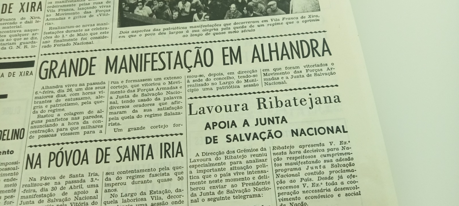 Tínhamos notícias de habitações concedidas a famílias do bairro da lata; notícias sobre o facto de o Partido Socialista já ter sede em Vila Franca; ou um texto que dissertava sobre de quem eram as colónias portuguesas referindo que os africanos eram nossos aliados. Mais à frente no mesmo jornal tomamos conhecimento da publicação da carta de uma mãe de Benavente que teve um filho no Ultramar. Foram também notícia factos relacionados com a nova comissão administrativa da Câmara de Vila Franca de Xira e a ascensão a presidente da República do general Spínola. “De repente tínhamos em todo o concelho comissões de moradores, pessoas que queriam que se arregaçasse as mangas. Foi um espírito totalmente novo”. Passados 50 anos, podíamos hoje ser um país melhor e mais desenvolvido, questionamos o historiador. “Precisávamos de mais massa crítica, e de pessoas que exercessem mais a cidadania, sem ceder ao conformismo. Muitos antifascistas deveriam ser uma lição, porque lutaram sempre!”
