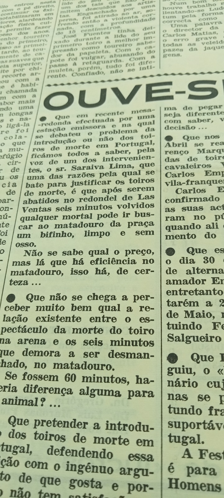 Os jornais e o Vida Ribatejana não era exceção levavam muito a sério temas “como as decisões do Governo ou as políticas corporativas” mas também “a vida das coletividades” já na década de 70 e claro está as notícias relacionadas com a Tauromaquia. Arriscava-se mais a nível nacional em que revistas como a Flama ou o Século Ilustrado “falavam de sexualidade” num contexto possível à época. A própria morte de Alves Redol (1969) é falada na imprensa nacional. “A figura dele foi tratada com muito respeito, porque era um homem muito abrangente. O tema da cultura popular era algo muito querido do regime e como ele tinha dedicado muito da sua vida às manifestações populares como o fandango, a música da Borda d’Água, a etnografia da Glória do Ribatejo, isso fazia dele uma figura à parte, apesar de ter sido perseguido”.